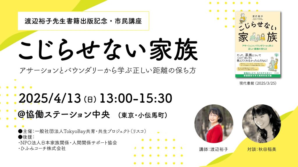 【4/13午後】【渡辺裕子先生書籍出版記念・市民講座】 「こじらせない家族〜アサーションとバウンダリーから学ぶ正しい距離の保ち方〜」